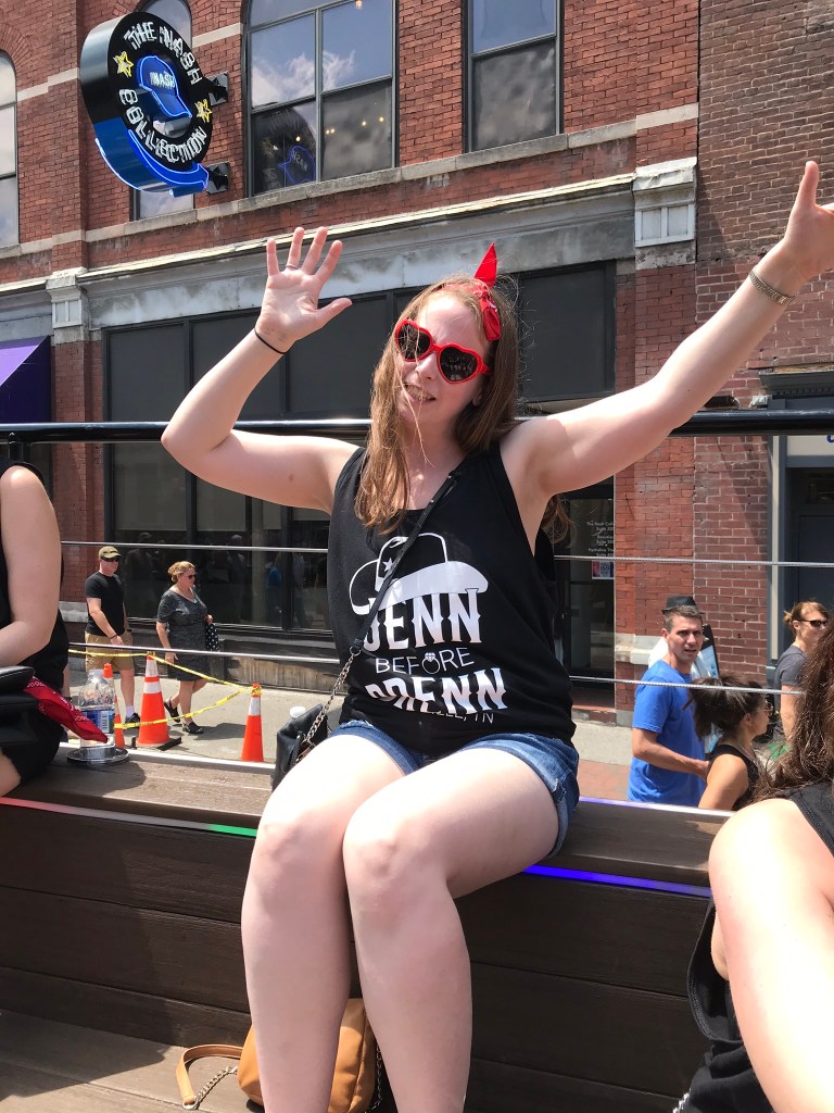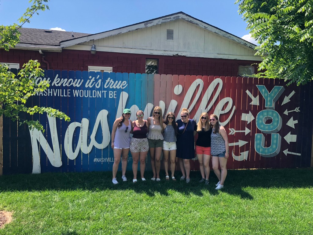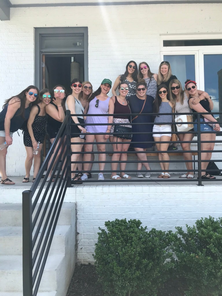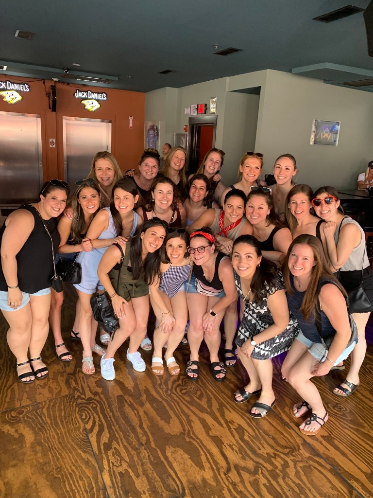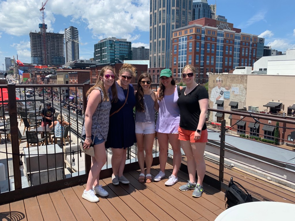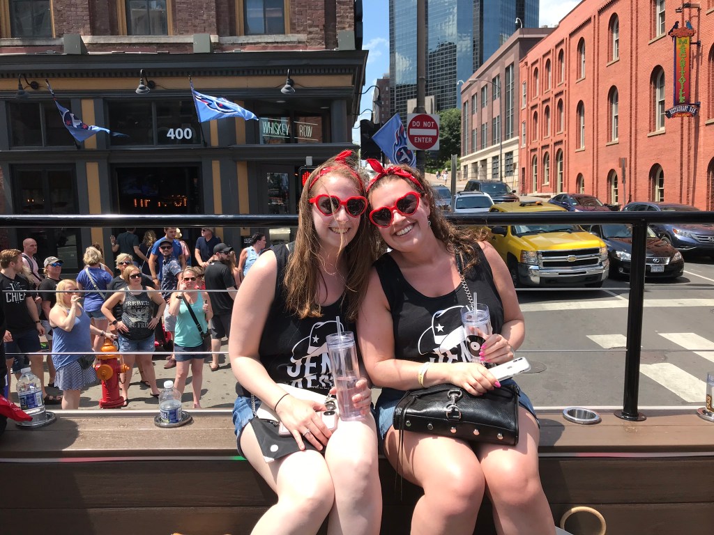 The next day was the real party day! We started out with brunch and then got ready for the Honky Tonk Party Express. If you’ve been to Nashville, you’ve most likely seen the pedal tours riding around downtown. It’s sort of like a giant group bike ride with music and a tray in front of you to hold your drinks. Well, with our small group of 21, we were too big for a pedal tour so we did an open top party bus instead. Let me tell you, this is a MUCH better option. We did not have to pedal in the 100 degree heat, but instead rode around in style with a steady breeze. We could hold and walk around with our drinks, and we didn’t have to pedal on a small uncomfortable backless bike seat for two hours. I highly recommend this option if you’re looking for a group day drinking activity or celebration.