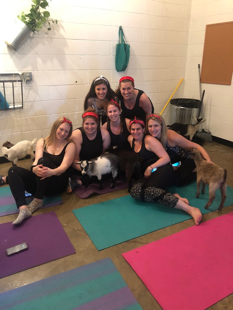 After grabbing some lunch at one of the bars, we headed back to the house to get ready for goat yoga. Yes, I did yoga with goats. I do not like animals and I did not want these goats to touch me, but I did it for the pictures, and for the bride. You’re welcome. I will never participate in this activity again.