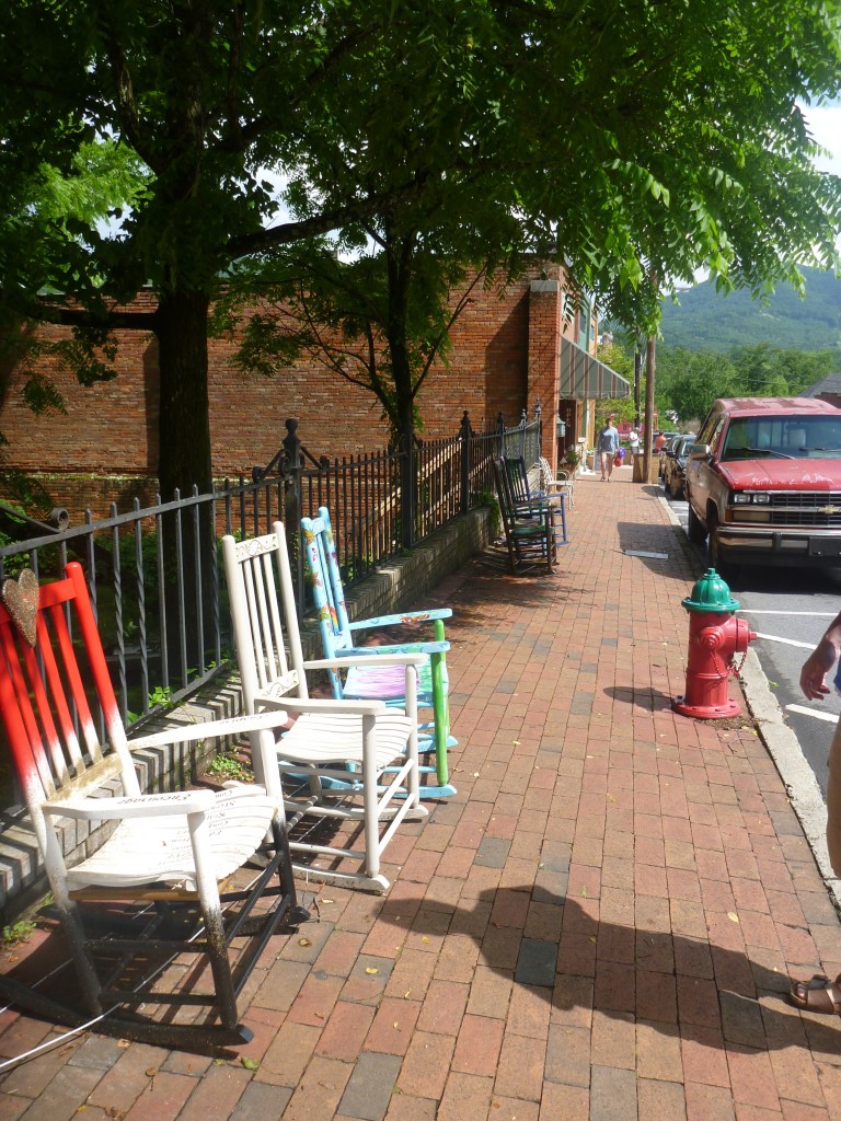 The first stop was Black Mountain, NC, about 25 minutes from Asheville. Their motto is “The Little Town That Rocks,” because there are rocking chairs lining the streets. It’s a really pretty cute little town, and made for a great pit stop on our way.