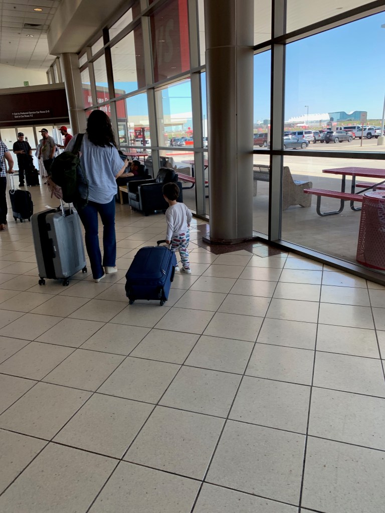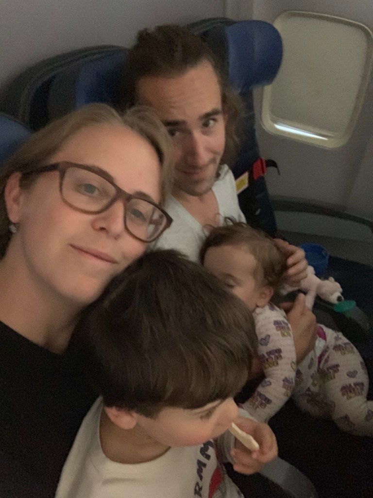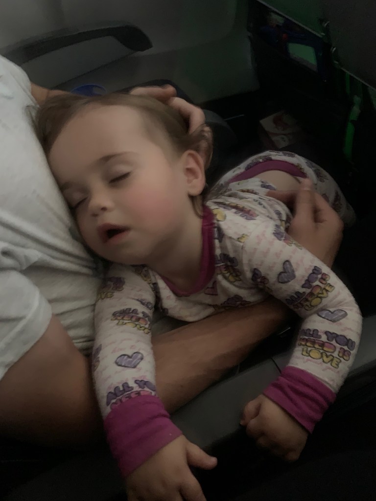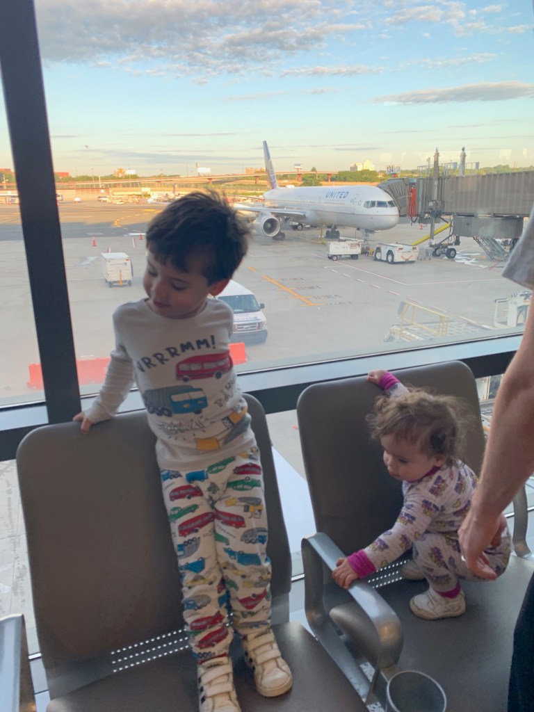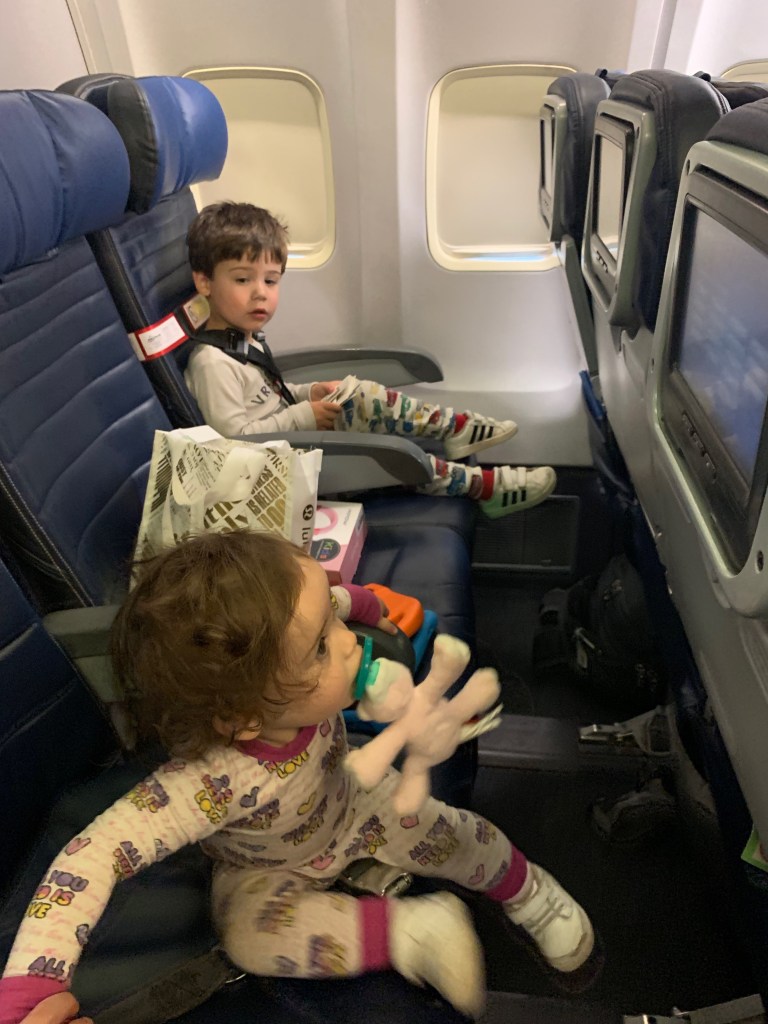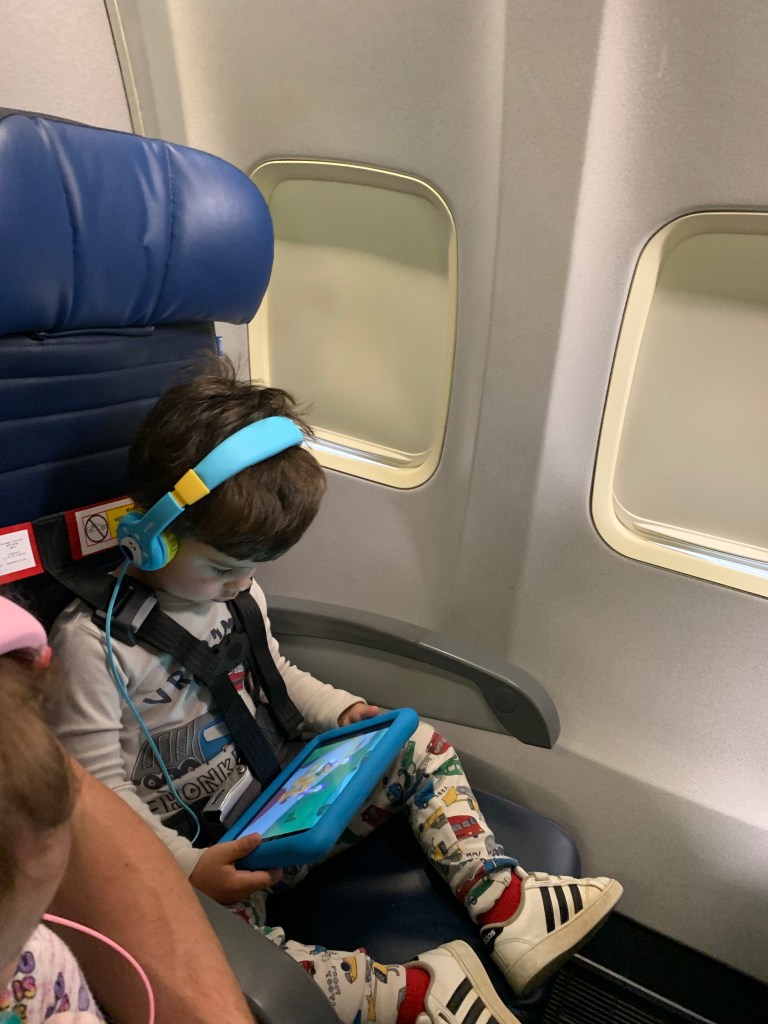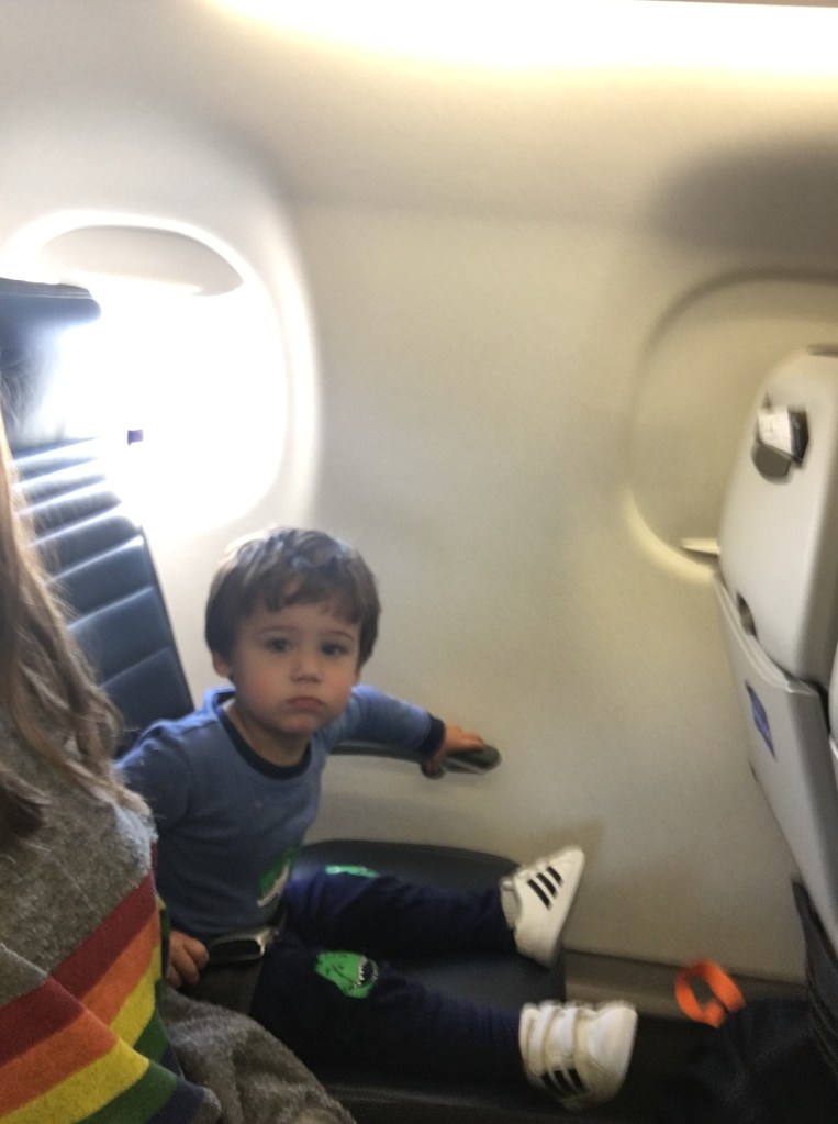 Here we are, surviving the flight on pacifiers, peanut butter and jelly sandwiches, and tablets. Pro tip: if you have tiny humans, take the back row. Joey walked in and out of the flight attendants area all flight rather than walking the aisles and blocking people and carts.