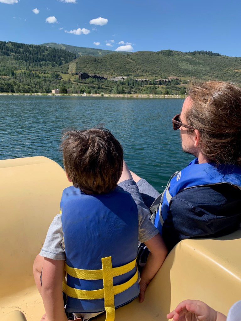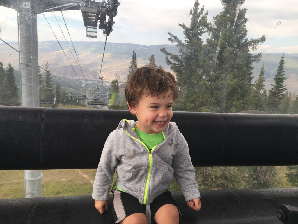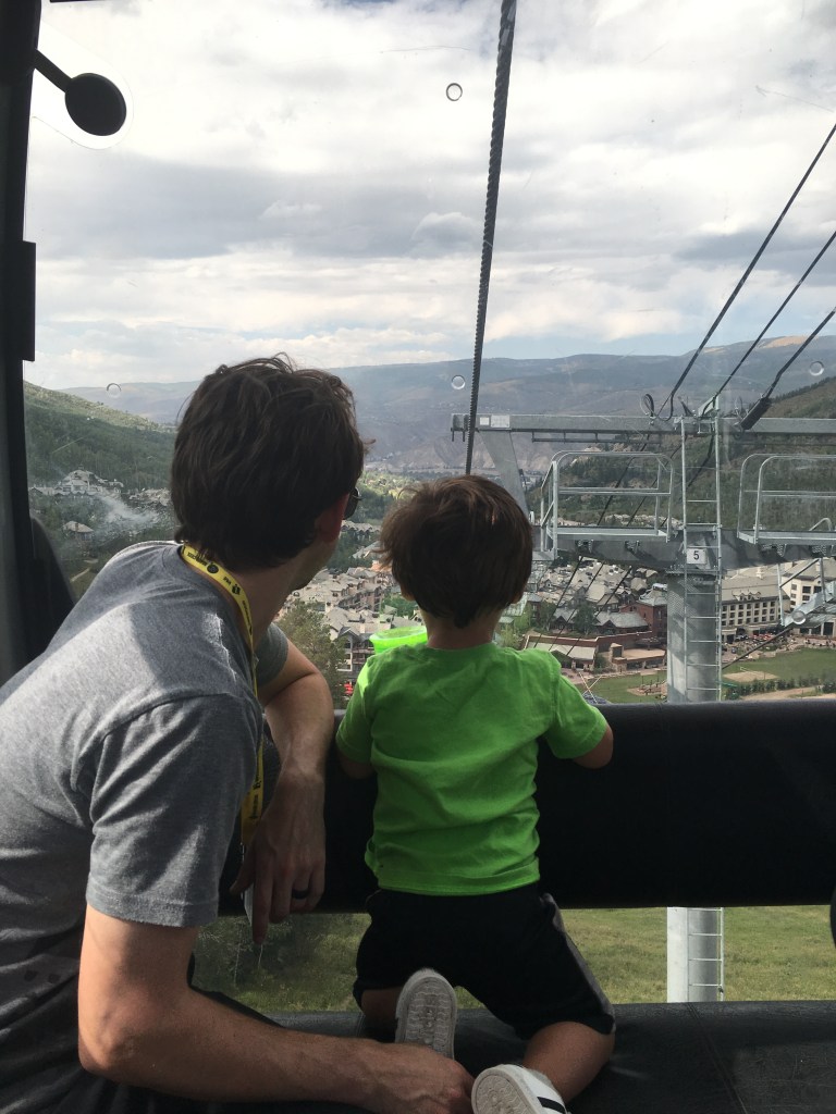 Last year in Vail, Eric took Landen on the alpine coaster. Then for the second ride someone important (or maybe just less high) measured him and said he was too short. I did not get to ride with him, and I was slightly devastated, so I’m really glad I got on with him this year (see above for the awesome photo). So, here’s Vail last summer with a slightly shorter kid and some much shorter hair.