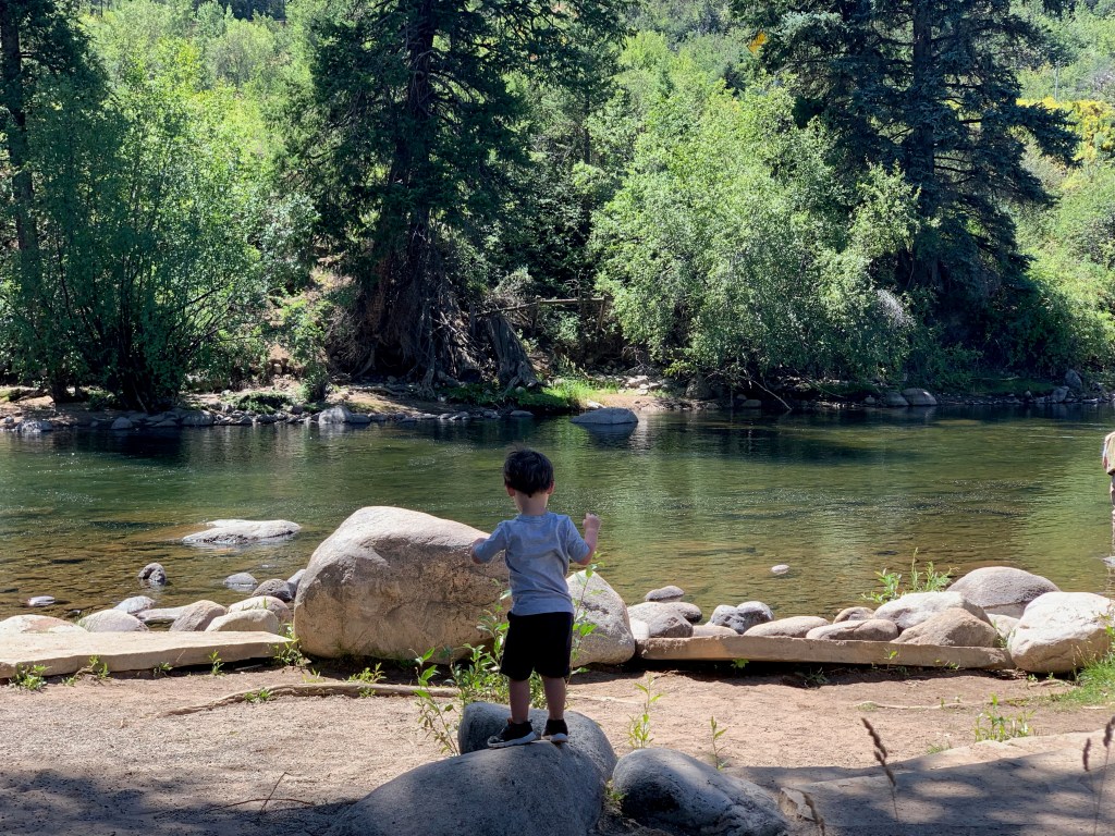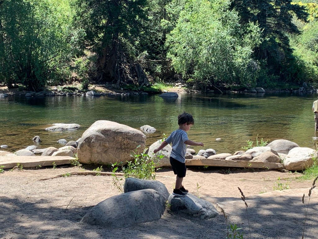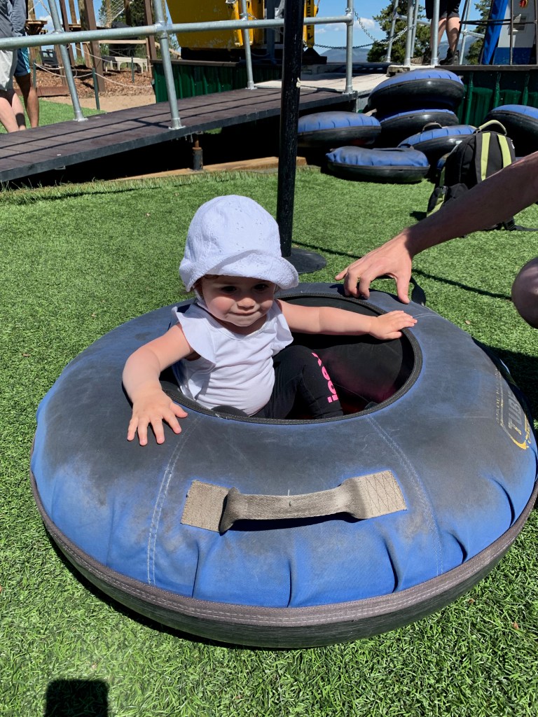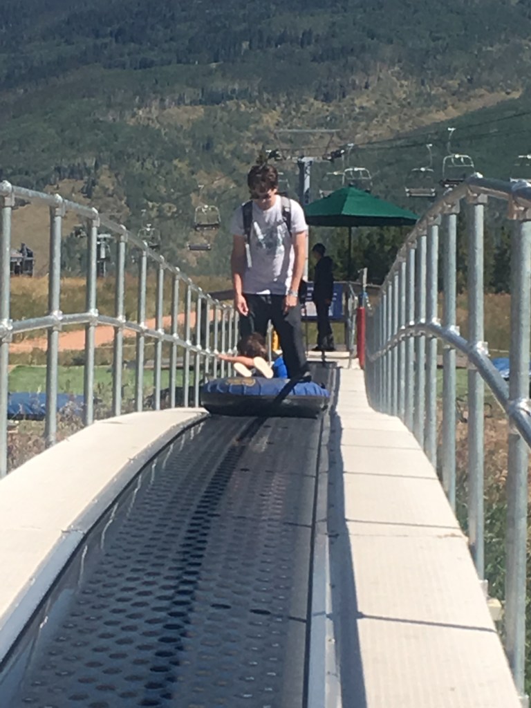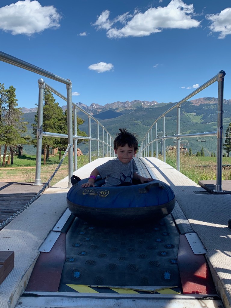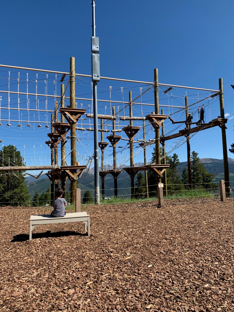 A few times during the trip, we went to vail and took the gondola up to Adventure Ridge. They have a ton of activities for all ages – alpine coaster, climbing wall, ropes course, zipline, summer tubing, and more. Landen loved every second of it, and Joey was so infatuated with the tunnels in the tiny person playground that she didn’t even realize she wasn’t old enough or big enough to participate in any of the activities. Again, we did this last summer. You have to be three years old and 30 pounds to participate in the activities up there, and we were able to pass off our giant for a three year old both last summer (he was 22 months old and just over 30 pounds) and this summer, a few months before turning 3. Joey will never be big enough to do this, and she probably won’t hit the 30 pound limit until she’s five. Sorry girl.