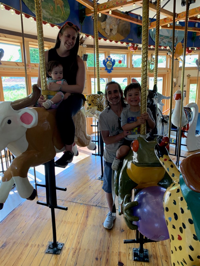 Evening Activity 1: We went to listen to some live music down by the river. They had a bouncy house that was completely unmanned so no one was monitoring if there were too many kids inside. There were. They also had this cool maze inside what looked like a food truck where the kids follow their way through tiny claustrophobic hallways and up and down ladders and stairs to find their way out. There’s really only one way through but once they get to the back you can’t find them anymore and they have to just keep moving. I was highly concerned this would not work for Landen and he’d get scared and/or stuck in the back with kids climbing over and around him and I’d have to squeeze my way through this tiny box to find him. I was absolutely right, but fortunately he got scared while he was in my line of sight, so they were able to open the box and let him out the front before he got stuck in the back. “I wanna go again mommy”, “Absolutely Not.”