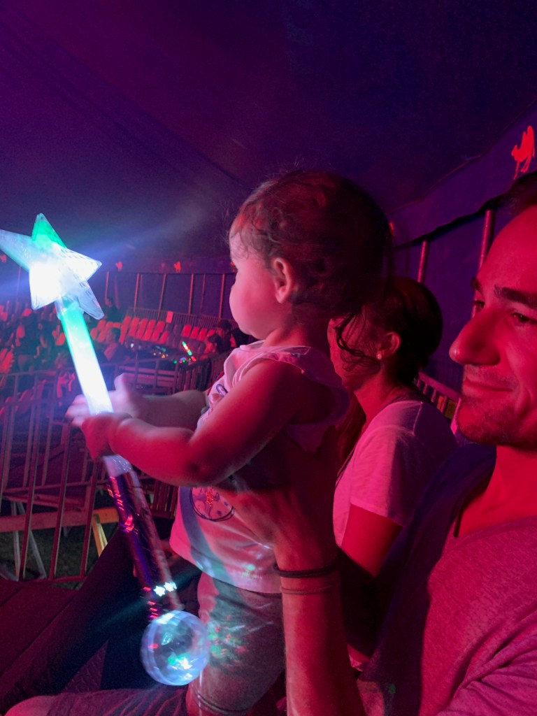 Evening Activity 2: We took Sheryl to her very first circus! It was also Landen and Joey’s first circus but they are one and two. This was a seriously low budget low talent circus, so we only stayed until intermission, but it was still fun. We bought a giant balloon that popped in about 12 seconds, as did all of the other $3 giant balloons, and a $15 light up wand. So we had a very normal first circus experience. “5 kids with popped balloons. That’s $15 in popped balloons just sitting right here.” -7 ish year old standing next to us.