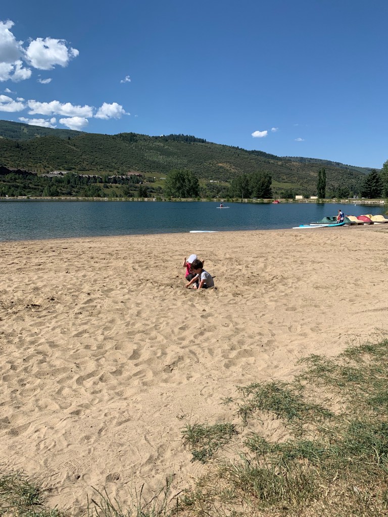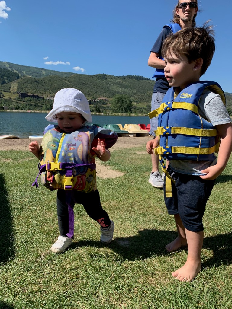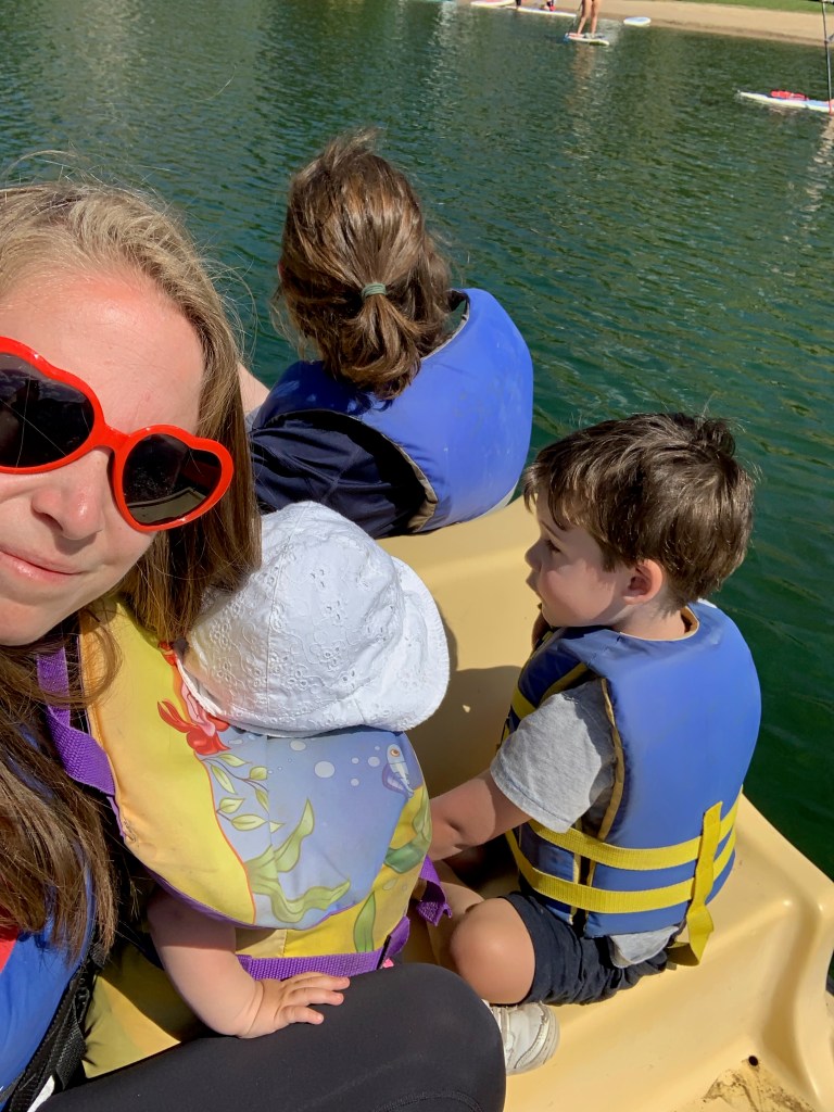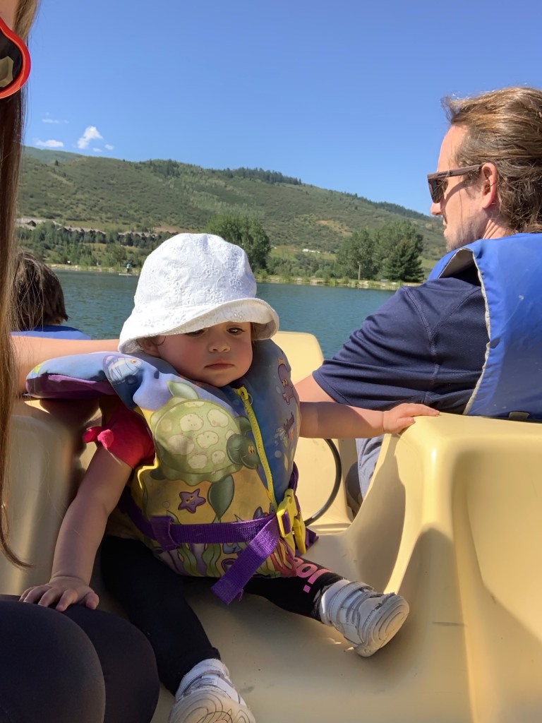 The playground in Avon is down by the lake (fun fact: after almost 30 years of winter trips, and about 10-15 of them with a view of the lake right outside our window, I didn’t even know there was a lake because it’s been covered in ice and snow). So a couple of times we were down there we spent some time on the “beach” and rented paddle boats. Another fun fact: paddle boats are not fun at all with two toddlers who don’t sit still.
