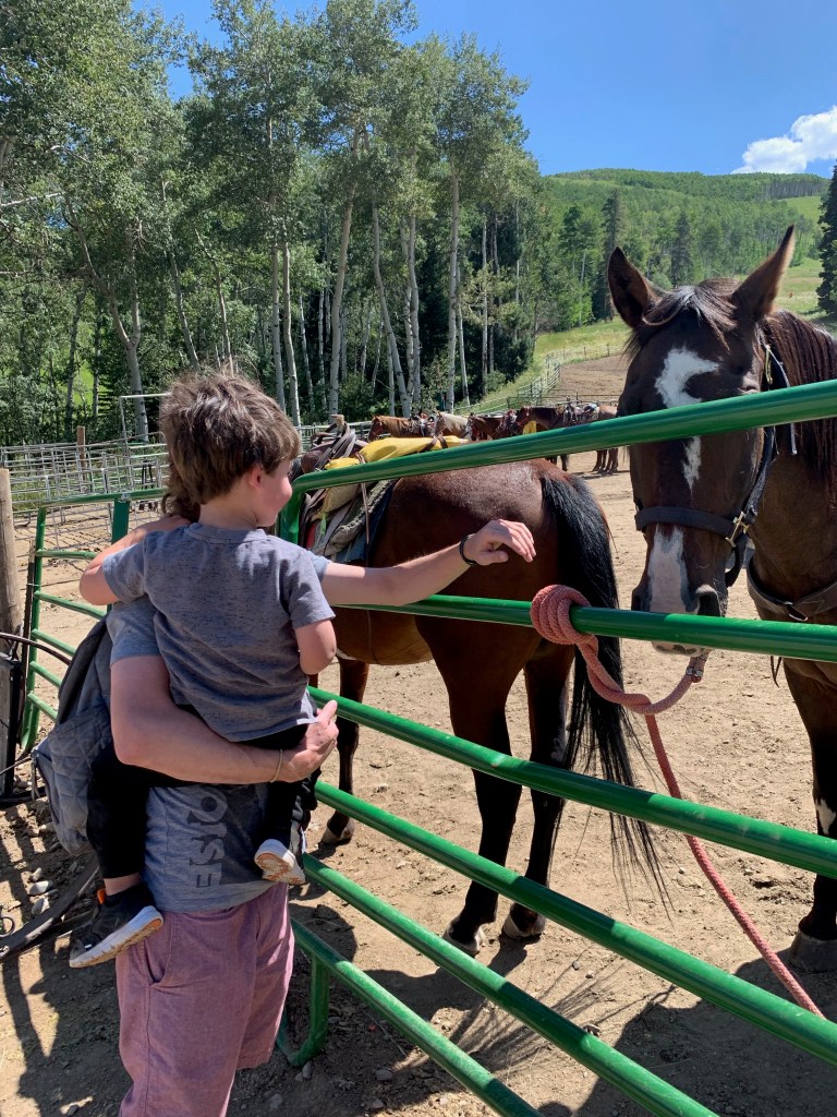 Evening Activity 3: The Rodeo. This was the one Eric was most looking forward to and the one he was most disappointed in. The pre-show was fun. There were pony rides that both kids were scared to participate in after waiting in line and signing a waiver, another bouncy house but this time with a person letting people in and out, a giant stick with a spiral of potato chips, and a bunch of other food carts. It was like a mini carnival. Followed by the rodeo which was pretty unbearable. It’s animal abuse, child abuse (look up mutton busters, or ask me about the first time we saw this spectacle and why we boycotted a pizza place for years after), and WAY WAY too patriotic for our group. This is not the same Colorado that voted to legalize marijuana. They were just so excited to announce that one of the girls on a horse was ALSO going to college! Can you believe it? A girl in college? WHAT?!? When they started reciting a poem about how great America is, and prefaced it with “If that horse could talk, he would say….” we decided it was time to leave.