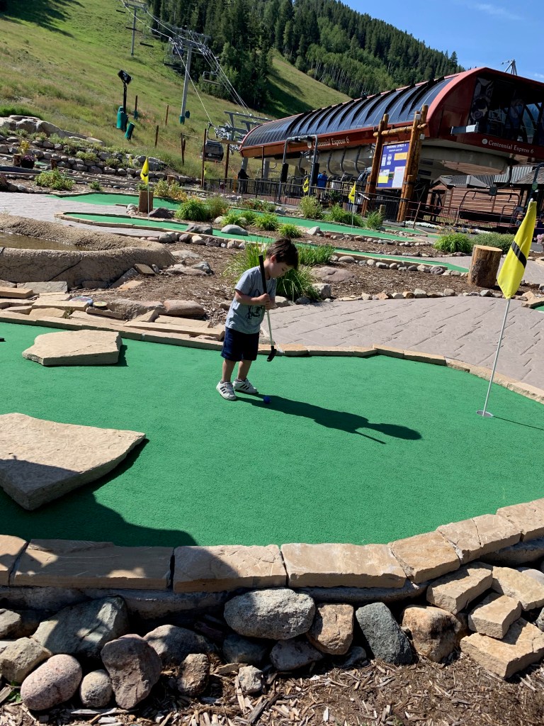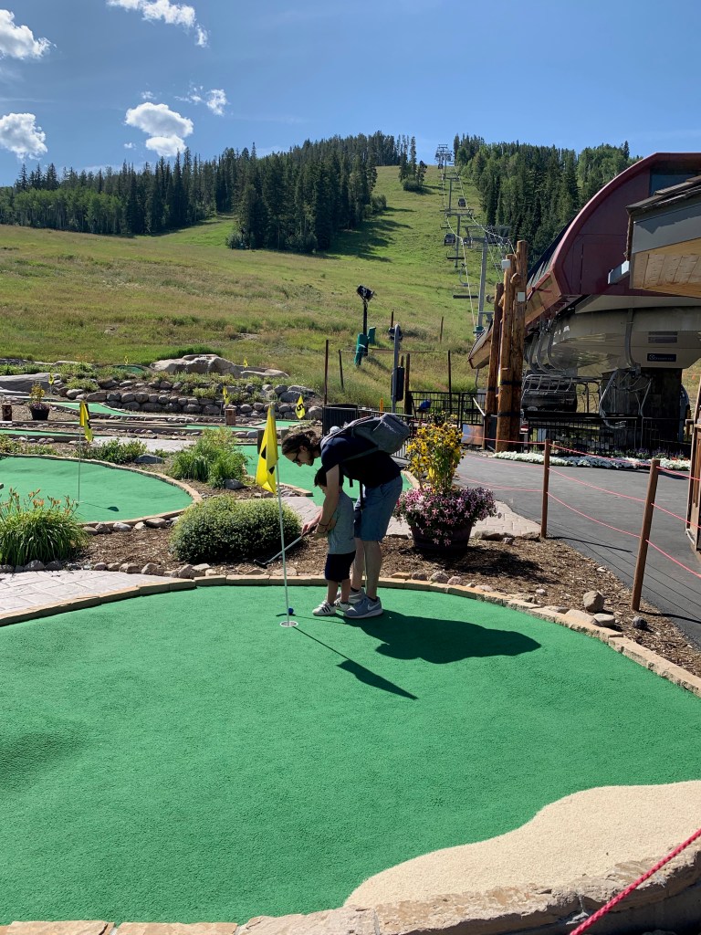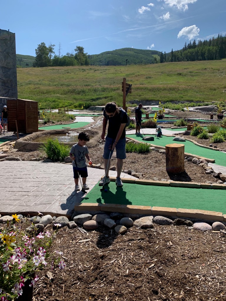 On another one of our trips up, we decided to make a pit stop at the mini golf course next to the gondola. I followed Joey around while Landen and Eric played, so I wasn’t really there, but according to Eric Landen wasn’t totally ready for this game.
