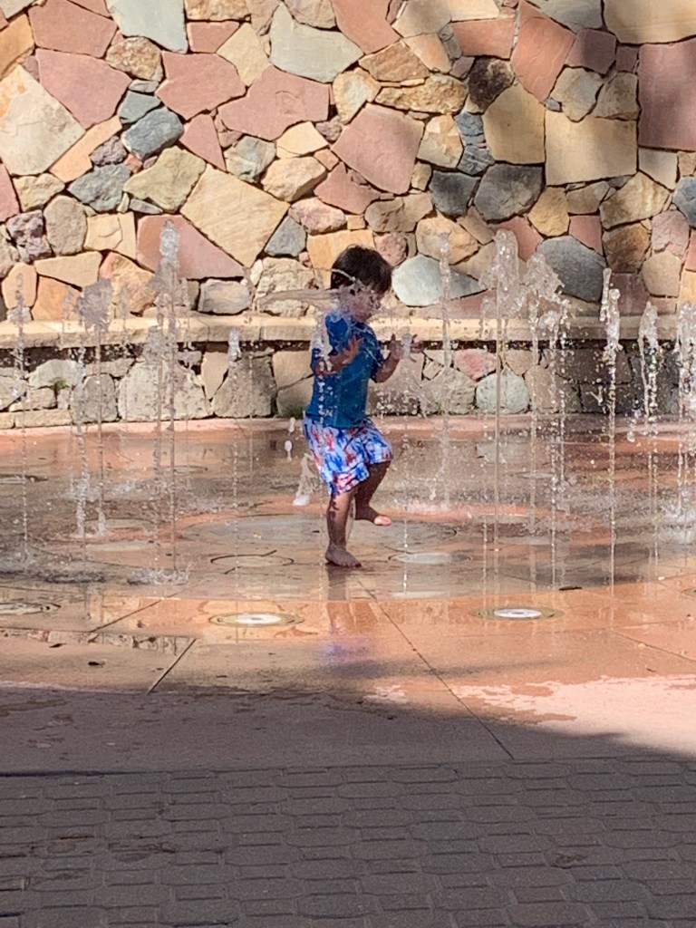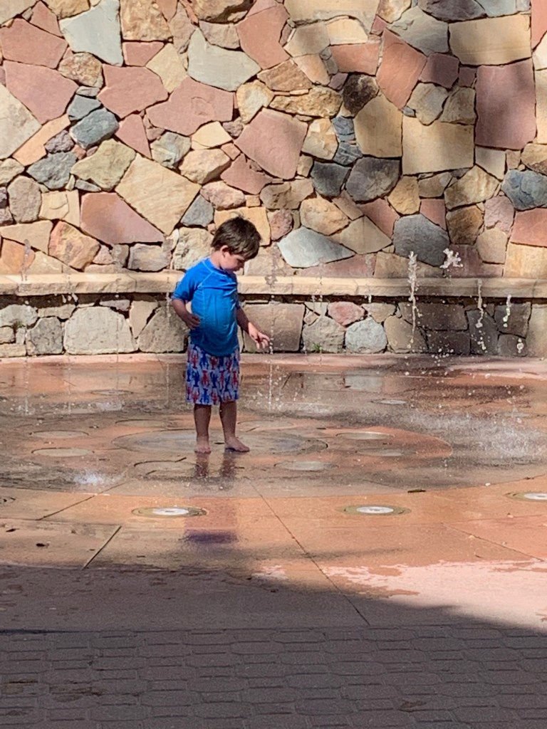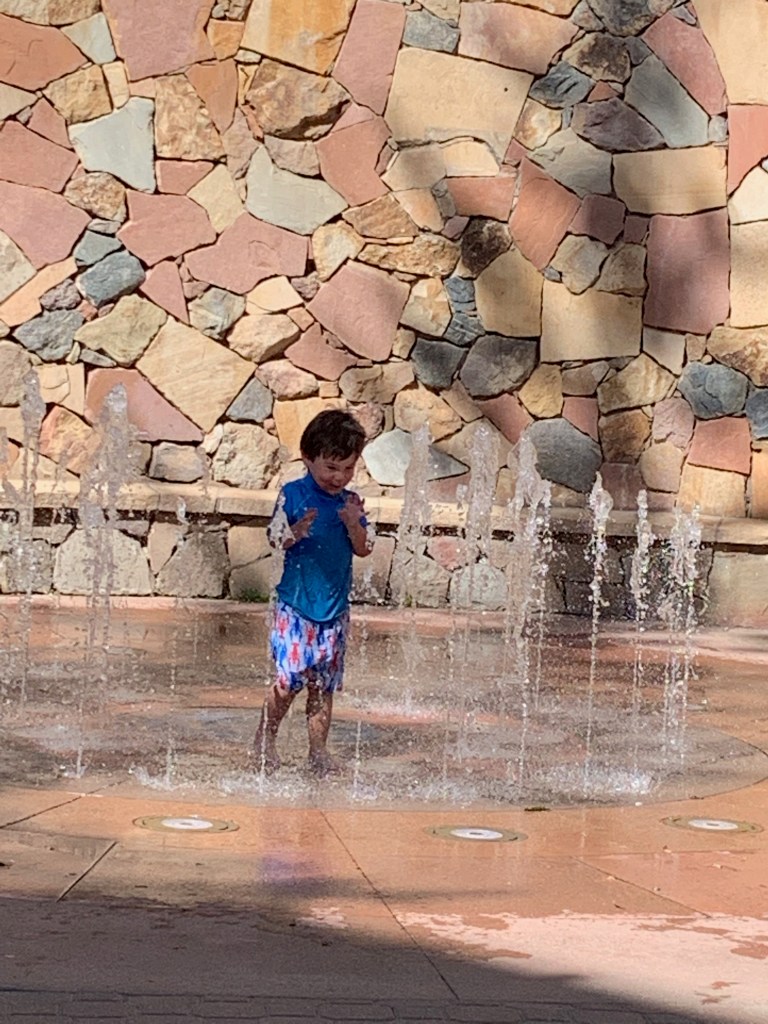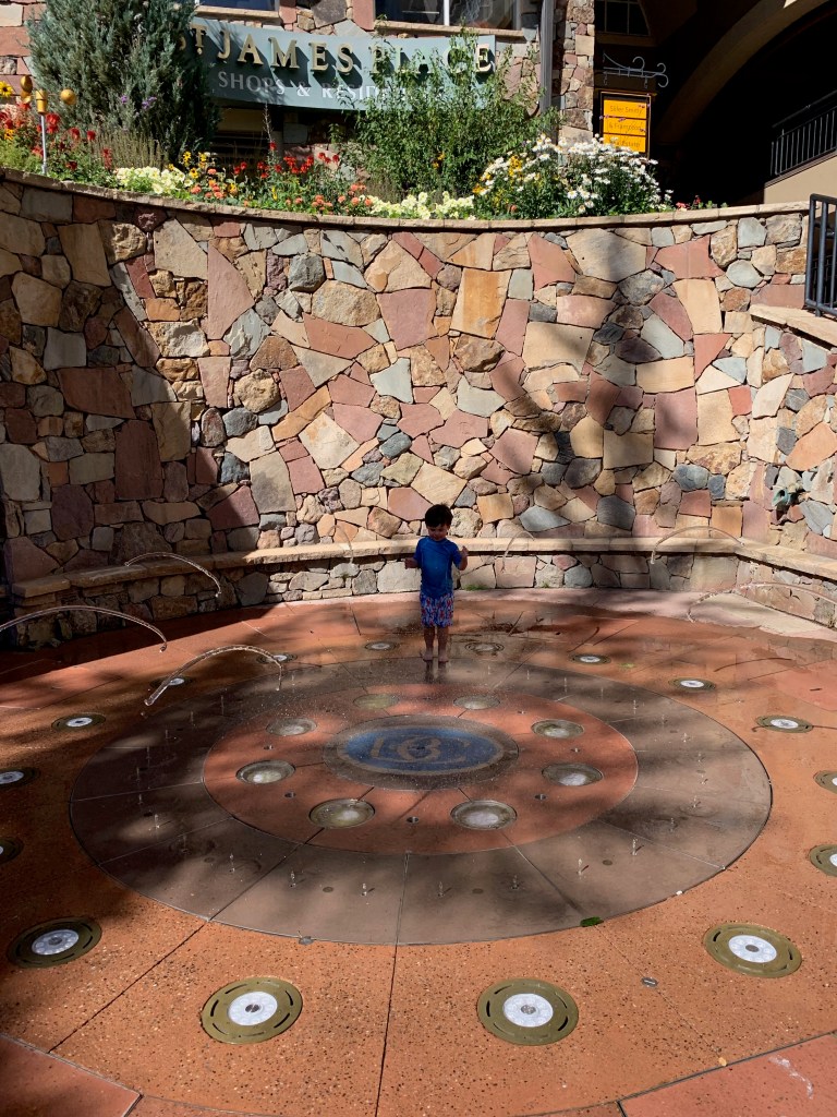 And right before our last ride up the mountain, we played in the fountains down in the village.