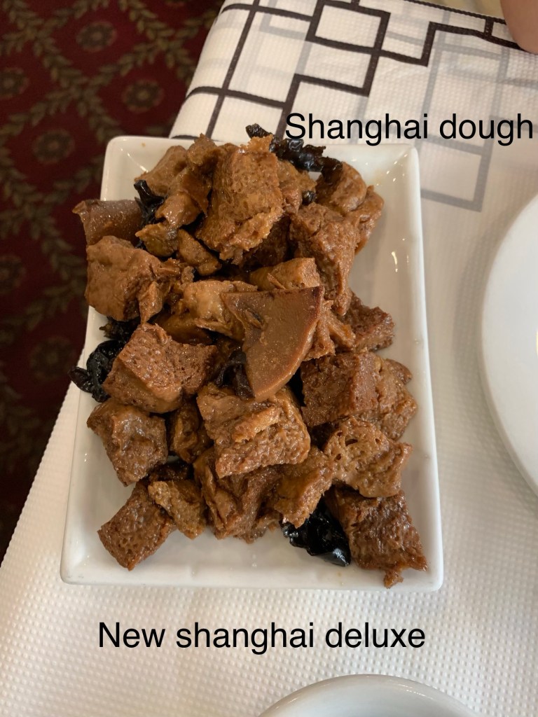 We ordered the dough to meet the minimum, and because we had never heard of it before and were intrigued. There was a language barrier, so we couldn’t really get a clear understanding of what we were ordering from the waiter. Turns out Shanghai Dough is a fancy word for “tofu”. It was okay and had a good flavor, but served cold. I’m sure I would have really enjoyed it if it was hot.