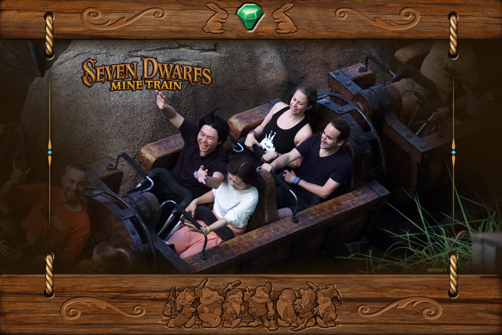 We headed over to Space Mountain for our next fastpass, and then had some time to kill in Tomorrowland so we rode the People Mover and got Eric some coffee. Finally, it was time for our 7 Dwarfs Mine Train fastpass. Honestly, I don’t get the hype of this ride, but maybe I’d like it more if I was a child or with a child. Because it is a roller coaster for children. Whatever.