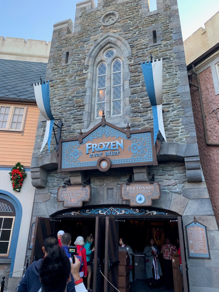 Anyway, at 8am on the dot they let people in, and we made our way to Frozen Ever After as quickly as possible. We were among the first people there and walked right on, and then we got off the ride with no plans to go back. This is an unpopular opinion about one of Disney’s most popular rides, but it’s really pretty lame unless you’re a small child, traveling with a small child, or a major frozen fan. We were not impressed.