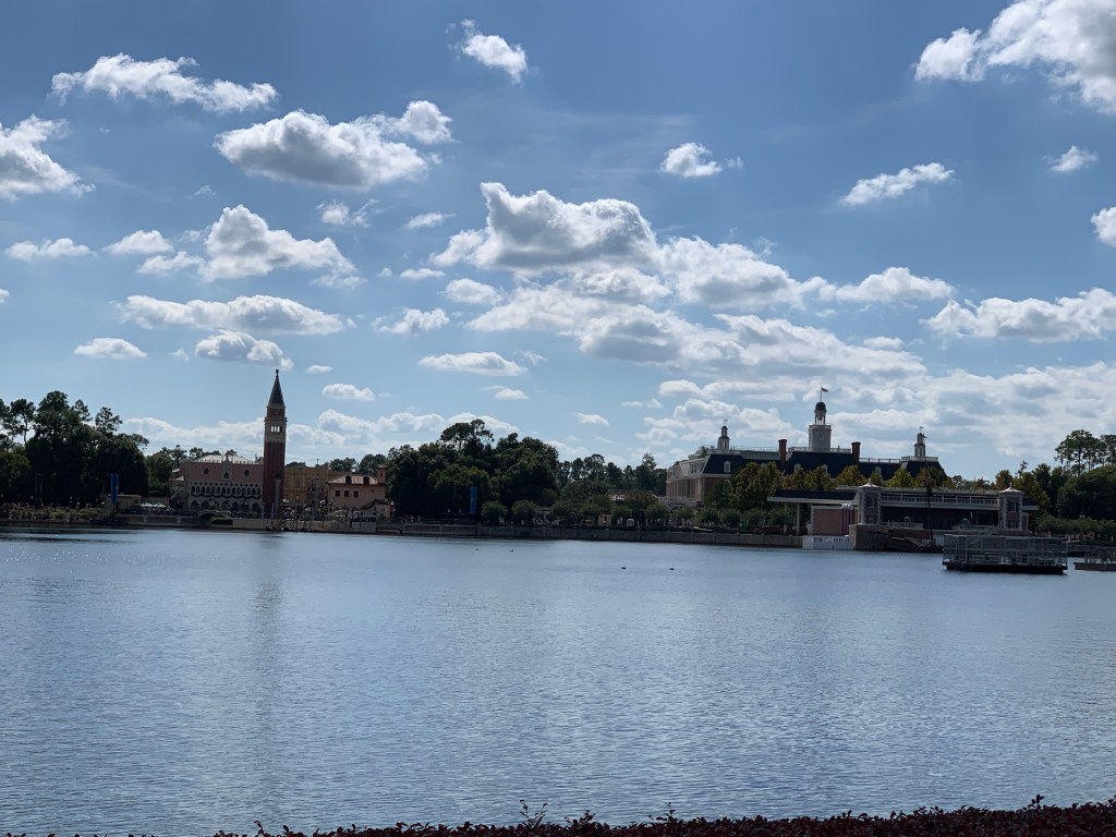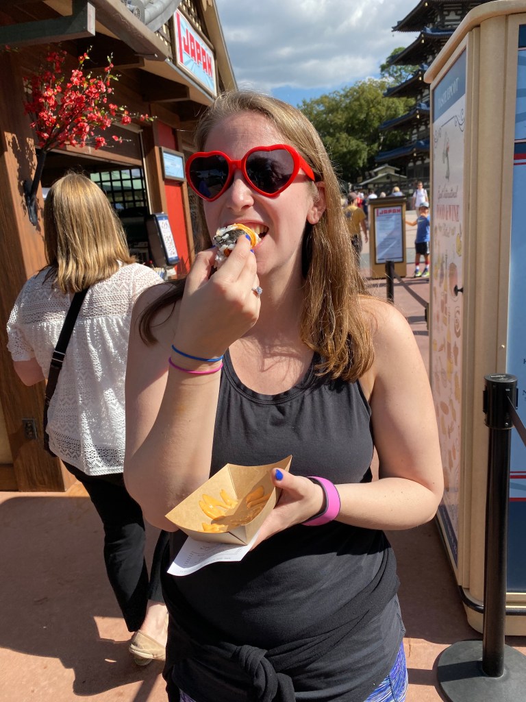 For our first day, we decided to hit up the Epcot Food and Wine Festival. We were up pretty early and got a quick small breakfast at the hotel (like, really small – basically a banana and granola bar), because we wanted our appetites for the festival.