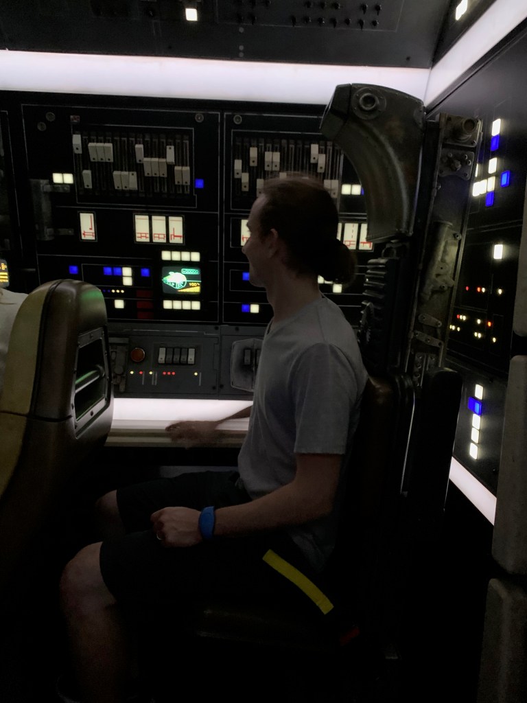 We did actually ride Smuggler’s Run this time, the new ride (new at the time – there’s now an even newer and supposedly better one) in Galaxy’s Edge. This was the only line we waited on the entire trip because they were not yet offering fastpasses for this ride. They are now, starting February 19. So the line was pretty long, but we hopped on the single riders line to hopefully save some time. It still took a while, but probably was a little bit faster, and we ended up getting to ride together anyway. To be honest, I’m not a Star Wars fan and I didn’t really get the whole concept of this ride, but I think your experience can be different every time. Two people are assigned Pilot, two Gunners, and two Engineers. Depending on who your Pilots are, your ride can change. I was in the back, as I’m sure everyone who does the single rider line is, and I didn’t really have any significant role in the ride. So I paid little attention and was less than impressed. I think other people think it’s cool though.