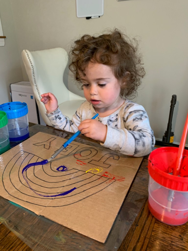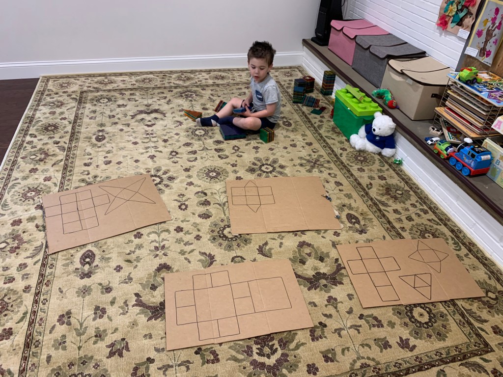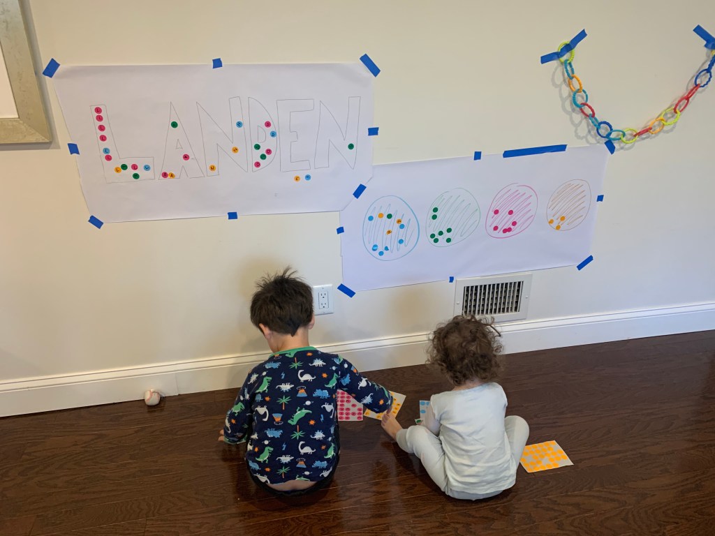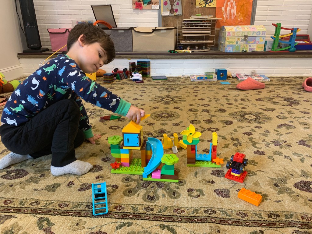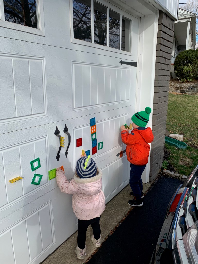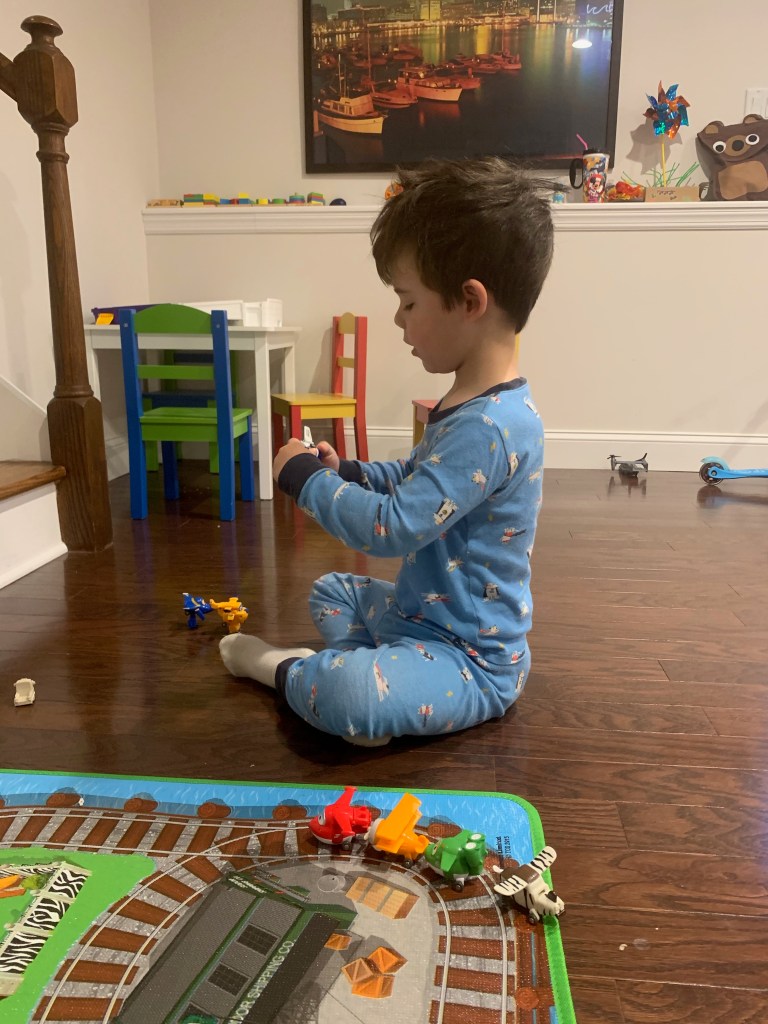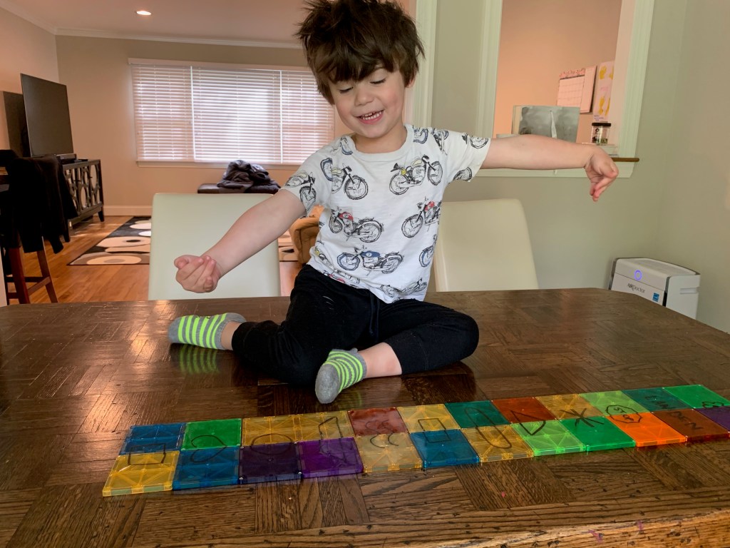 - Landen learned to play independently. This was HUGE. Since the day he was born he was the kid who would scream the second he was left in a room by himself. Playpens did not work. He just clawed at them and screamed louder. He was never a huge fan of ANY toys and he always just wanted to be entertained by adults. Even when he’s watching TV he wants to sit on someone’s lap. It’s exhausting and just super draining. Don’t get me wrong, he still has a LONG way to go and still frequently says “I don’t want to be alone” or “I need a grown up to play with me”, or my favorite “can Joey take care of me if you can’t?” and yesterday he asked me to move my chair to the head of the table with his so I could be closer to him, because sitting next to me but around the corners of the table wasn’t sufficient. But he spent many hours during this time just building quietly with magnetic tiles or creating his own imaginary world (usually based on whatever his favorite show of the minute was). Joey actually always had an innate ability to play by herself, and I actually think it got a little worse for her during this time, but still not so bad and probably mostly just developmental.
