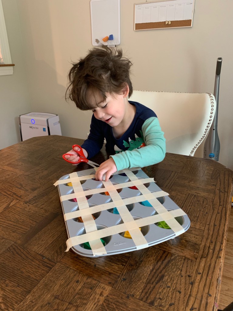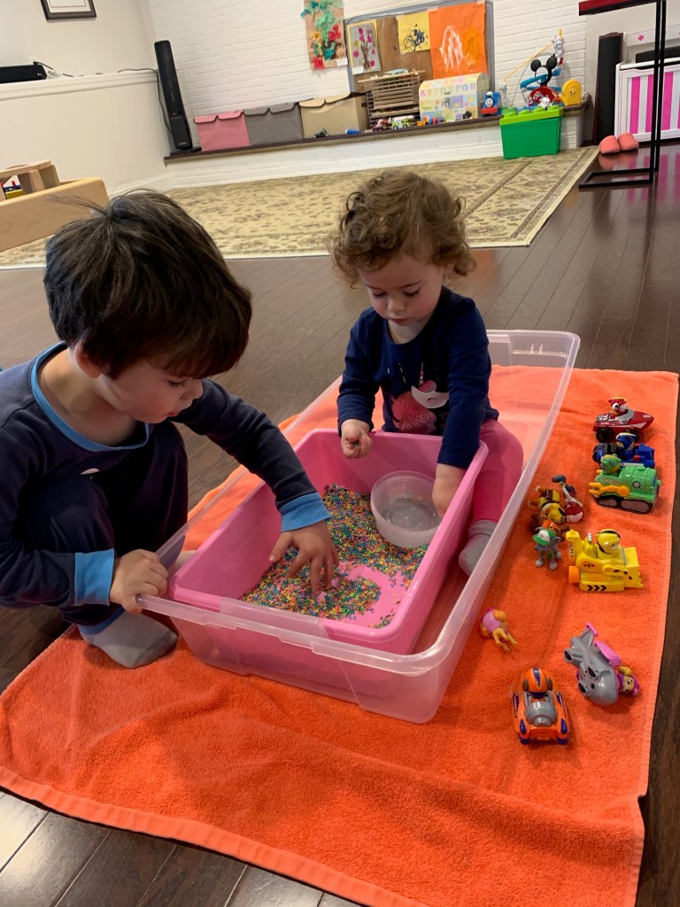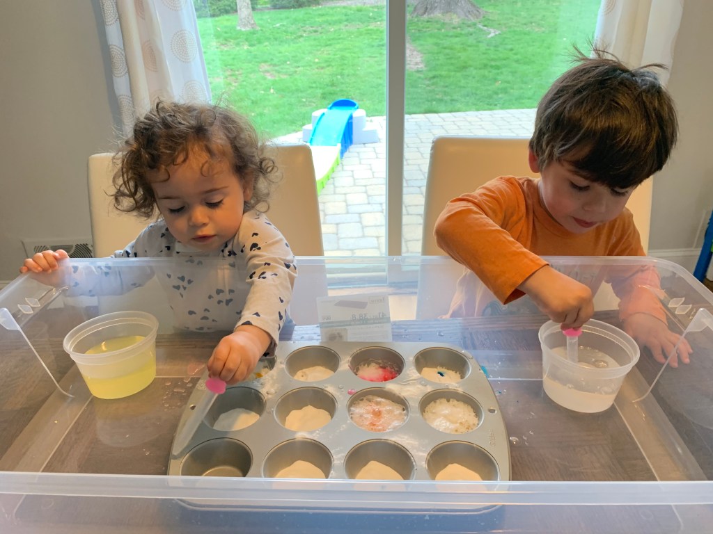 I followed every kids play account on instagram and frantically tried to come up with ideas to entertain my children on the cold and rainy days in the beginning. And if you recall, it snowed in May so cold went on for a very long time.