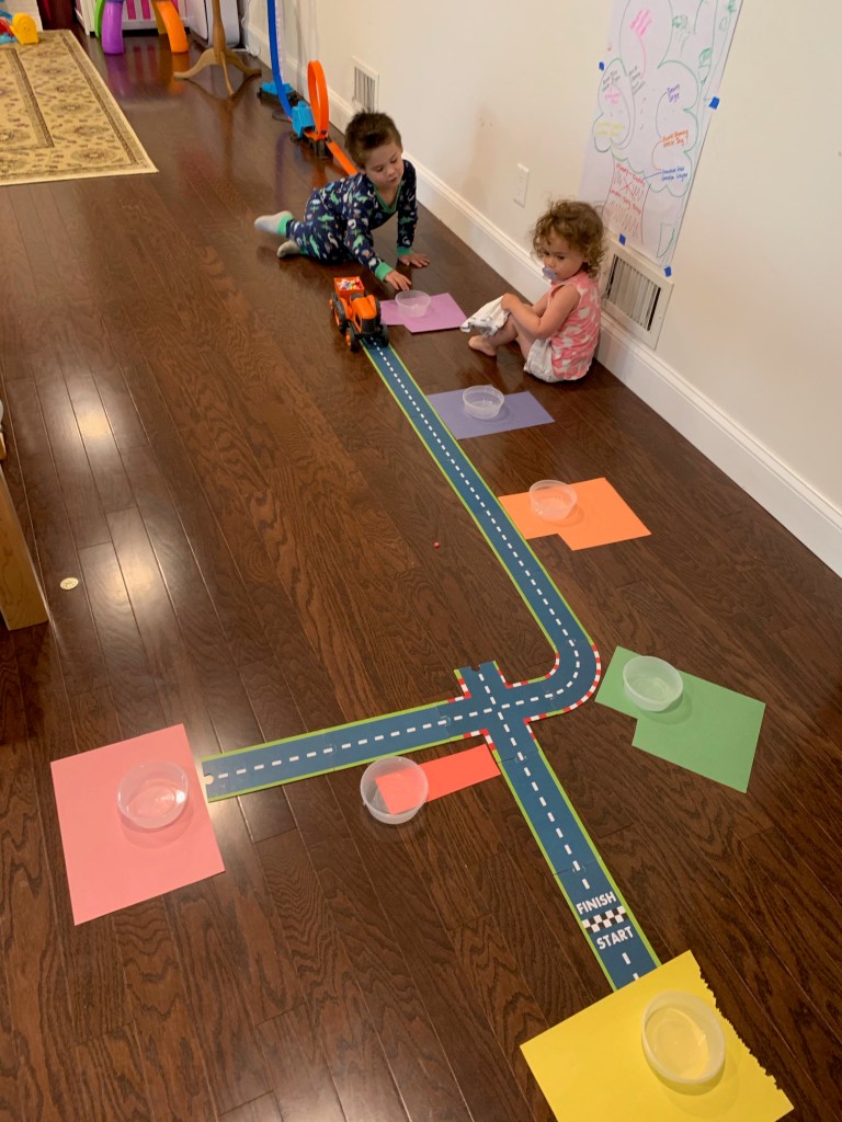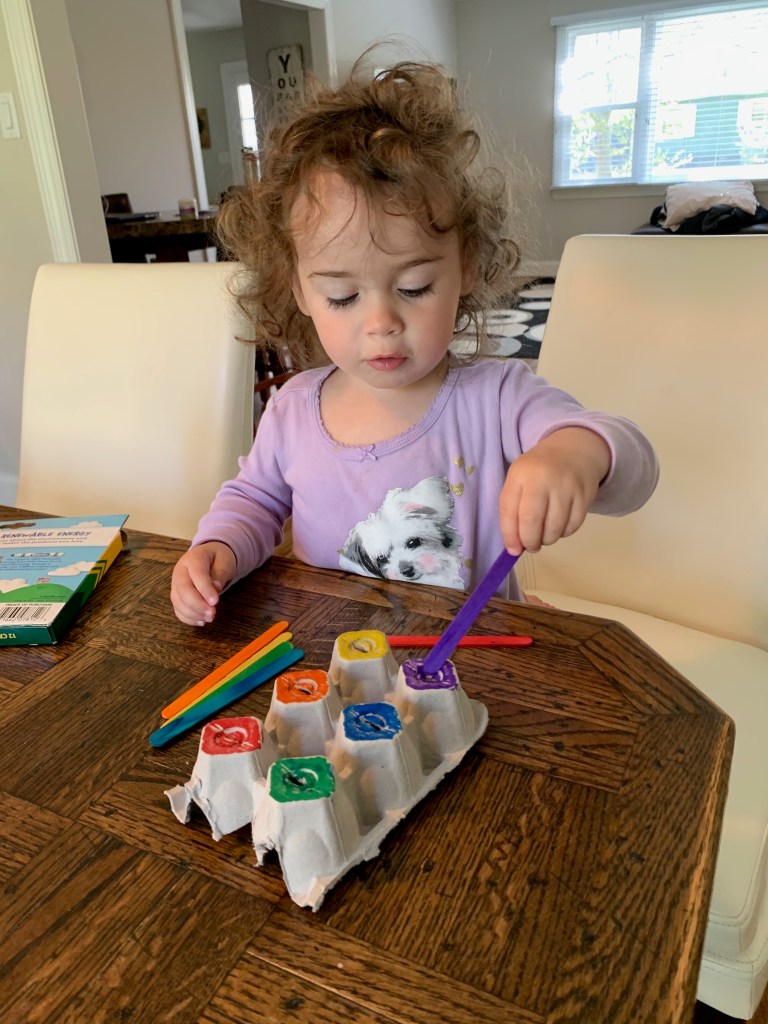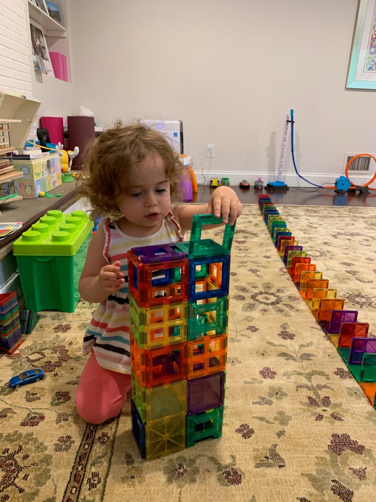 - We’re still learning about the beauty of toy rotations. There’s a lot of research (or at least a lot of play instagram accounts which is where I get my information these days) that says that less toys are better. It allows kids to focus their attention and really play and learn for longer. Their attention spans are expanded by letting them spend time with a few things that they really love. We have way too much. We’ve done some rotating, moving things into different rooms and swapping things in and out of closets and I noticed that a toy that didn’t get touched for months and then put away was all of a sudden a new favorite as soon as it was taken out of hiding. Just having a few favorites out is really beneficial to learning, playing, and peace and quiet, and we need to make an effort to declutter a bit to expand on the independent play.
