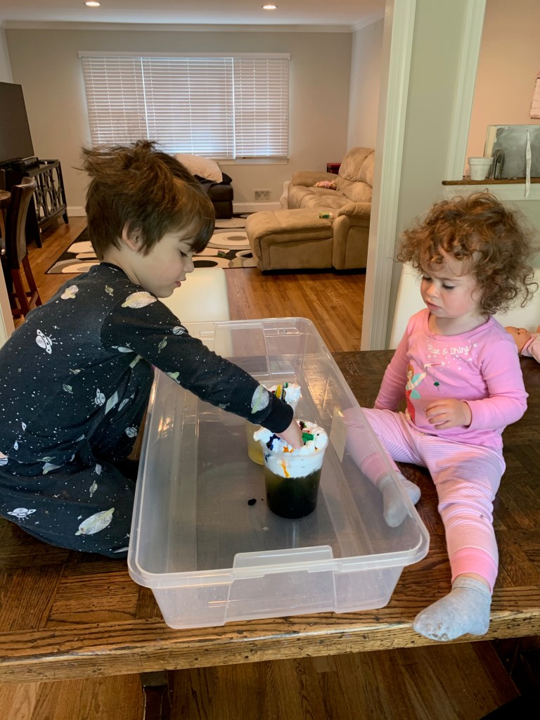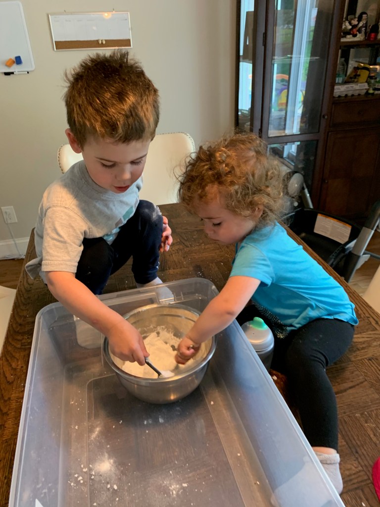 - Speaking of activities, I learned from Busy Toddler (one of those million instagram accounts I began following, and easily one of the best) and then through my own experiences, that activities are nothing more than a tool. I set up so. many. activities. that either barely got touched or got played with for like 12 seconds. The set up took way longer than the activity in almost every case. BUT they changed the whole mood of the day. Kids are fighting? Pull out some baking soda and vinegar. Make one explosion and the fighting stops and they go play with their magnetic tiles for an hour without any mention of whatever toy they both wanted to play with. They are screaming for more tv? Pull out some glue and popsicle sticks. 2 minutes later the house they’re building is done and they’re playing with magnetic tiles for an hour with no mention of tv. Everyone is running and screaming and someone is probably going to fall and smash their head? Grab some scissors and make a dotted line on paper to practice cutting. 1 minute later the paper is cut and they’re off with magnetic tiles for an hour (they really like the magnets, which also made for some of the best set up activities).