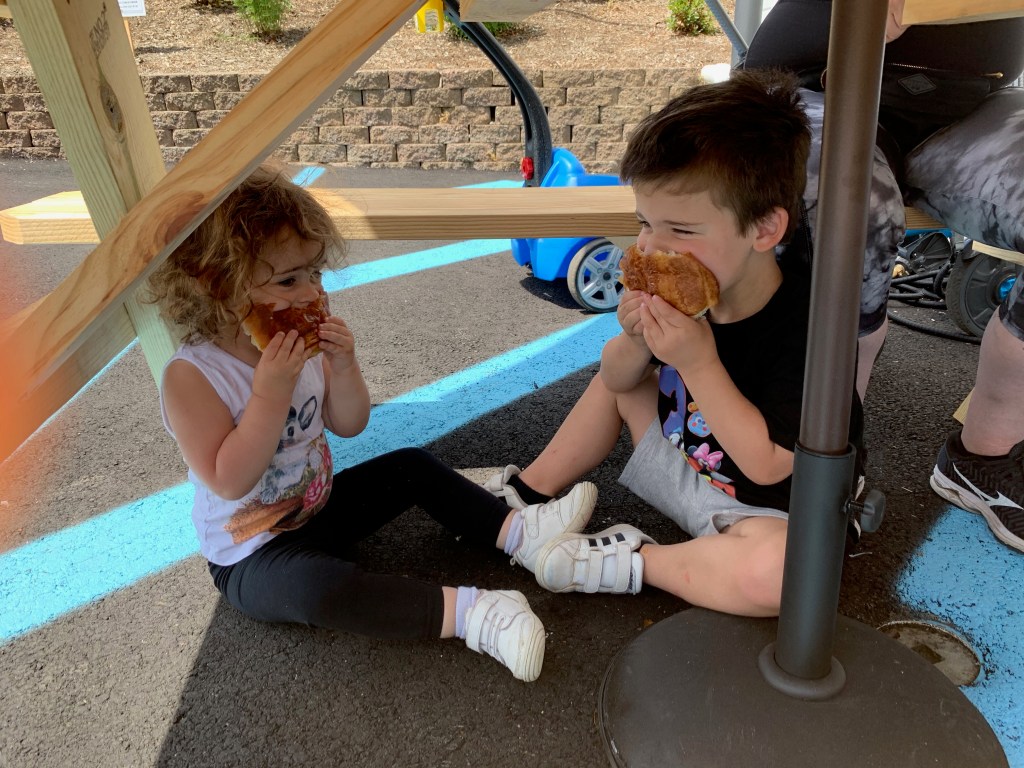 After 100 days, things are starting to open up again. We haven’t been to a restaurant and probably won’t for a while, playgrounds are still closed, my kids are not enrolled in camp for the summer, and who knows what will happen with school in the fall (set to start like one minute after I’m due to birth this new human), so there’s still a long road ahead. However, as cases are down (for now, as I firmly believe they will go back up with the protests and reopenings) and summer weather is here, we’ve been able to spend some time playing with grandparents, aunts, uncles, and cousins outside which has helped ease some of the stress of this time.