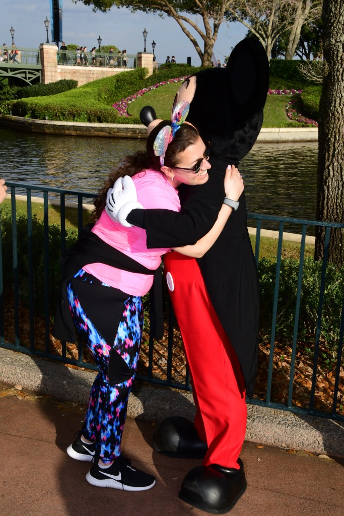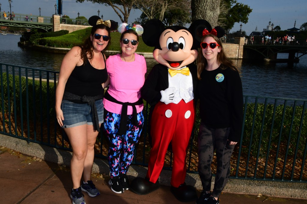 We got off at Epcot and while I was waiting for Jen and Jackie to get their bags checked because they didn’t wear pack mule pants, I spotted none other than THE MOUSE with a not so long line. AND we were the LAST photo taken before the changing of the guards, so one minute later and we would’ve had to get going and skip this opportunity. Yes, we did all four parks AND MICKEY! IN ONE DAY! Seriously, can you think of a better day ever?