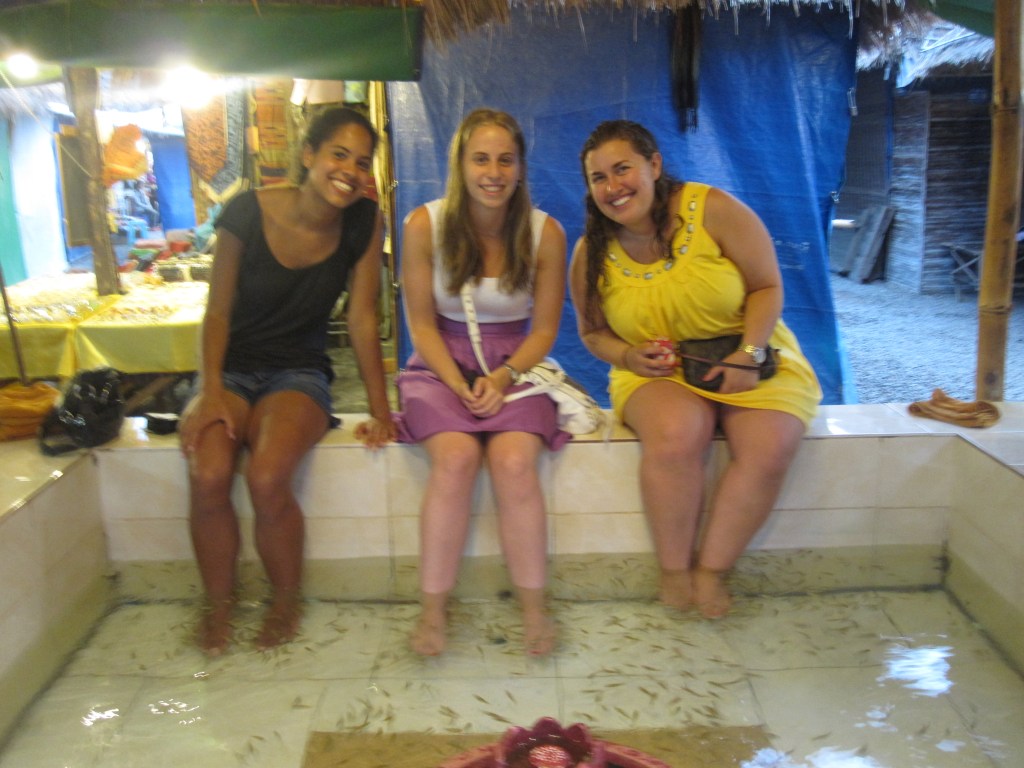We got the dead skin chewed off of our feet by tiny fishies. I don’t know if this is sanitary or anything, we just handed some people who barely spoke English some money and then their fish ate our feet after eating lots of other people’s feet too. Sounds sanitary to me.