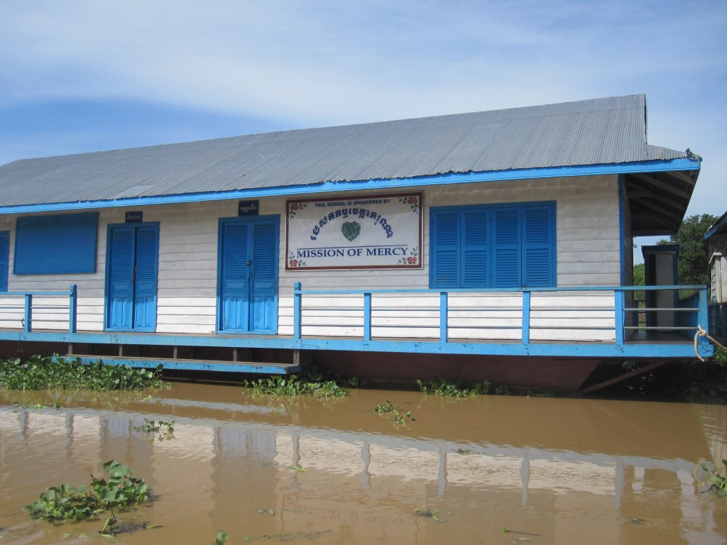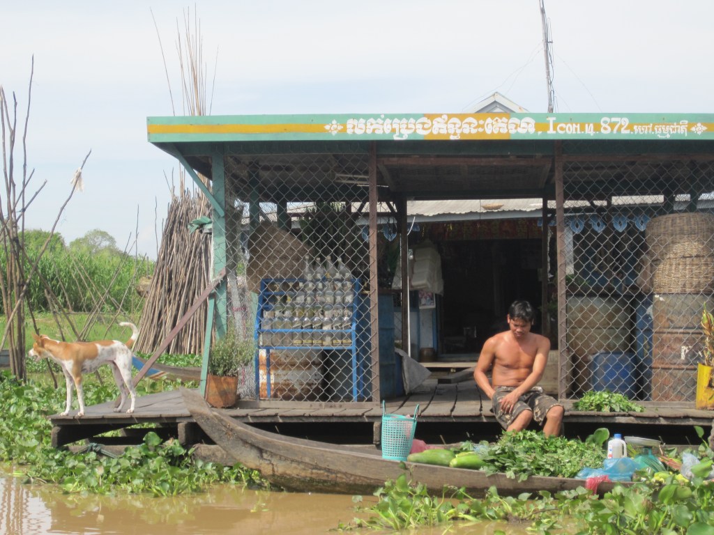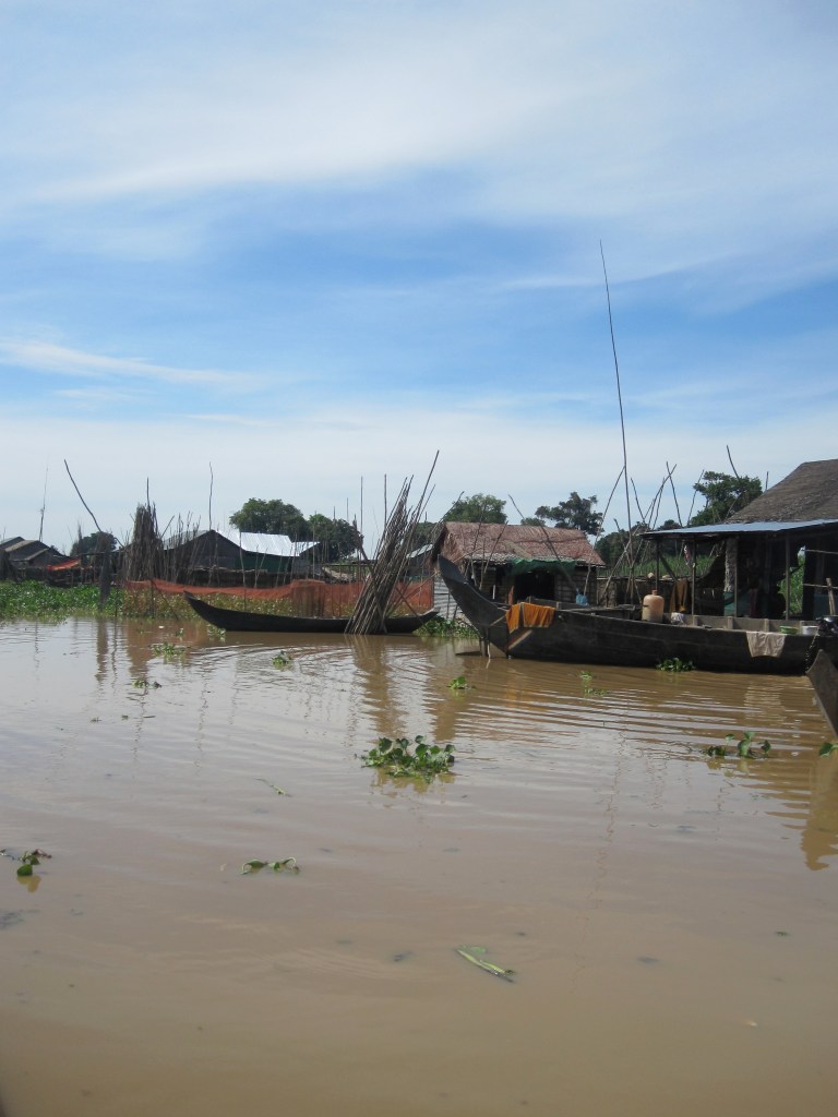 Finally, we went to another floating village. It was surprisingly different from the one we saw in Vietnam. Land was definitely more easily accessible in this village, and they also had a school and a little shop here. The people also had boats, so it seemed like they had access to more necessities. Also, since they were so much closer to the land, the water was not as deep. Therefore, unlike the village in Vietnam that was solely made up of homes built on little docks, this village also had some homes simply held up by sticks.