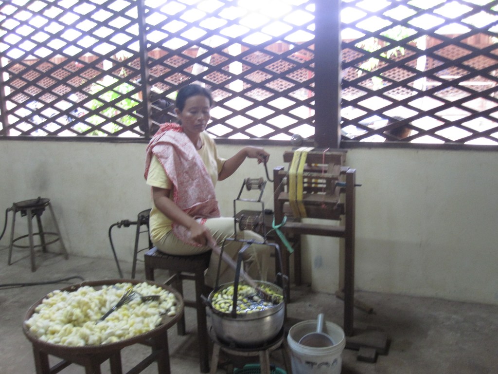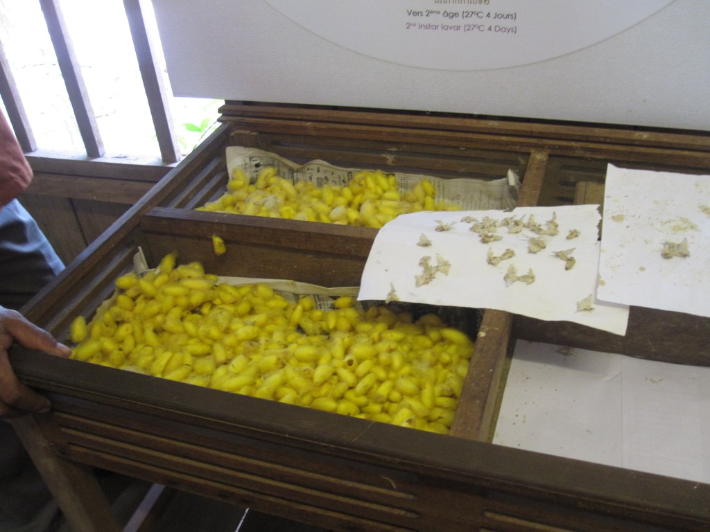 And we went to another silk making village so as promised in my Laos post, here are some not so good pictures of the process from worm to scarf.