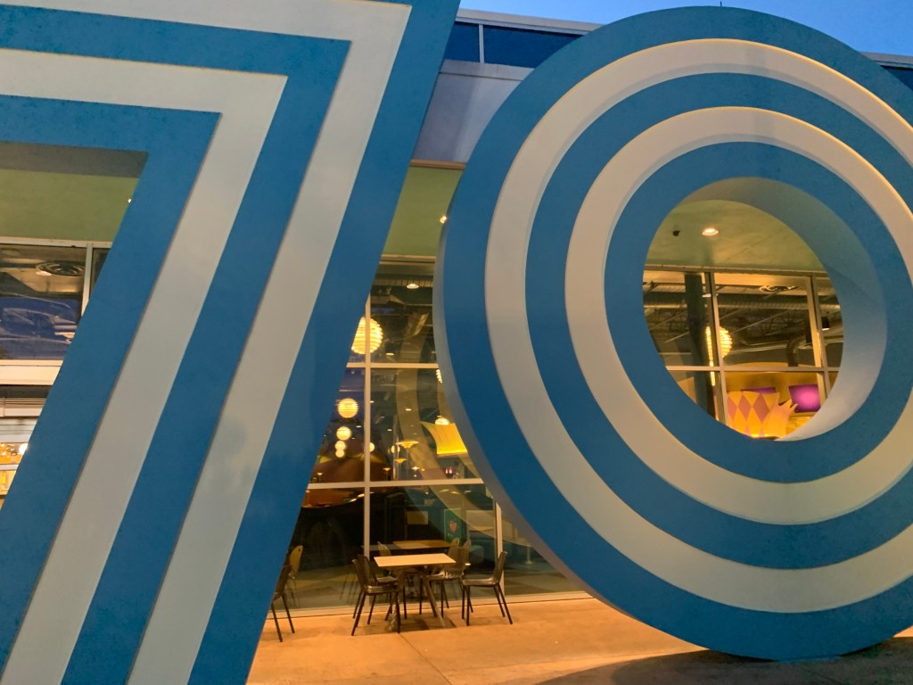 Okay enough about the rooms. If you go to Disney, there’s a pretty good chance you’re not there for the rooms, and you won’t be spending much time indoors. So let’s talk about the resort itself. The theming of Pop Century is really fun for kids and adults. There are 5 sections of rooms, each based on a different decade over the 20th century (50s, 60s, 70s, 80s, and 90s).