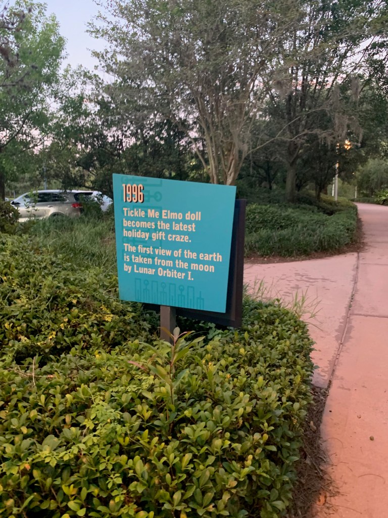 Another nice touch is the fun facts the resort provides you about each year throughout the decade. You won’t really see many of these unless you explore the running path, but it’s definitely worth it if you have time to go for a walk (or run!). I really liked finding my birth year and those of my family members, and also just learning some general fun facts!