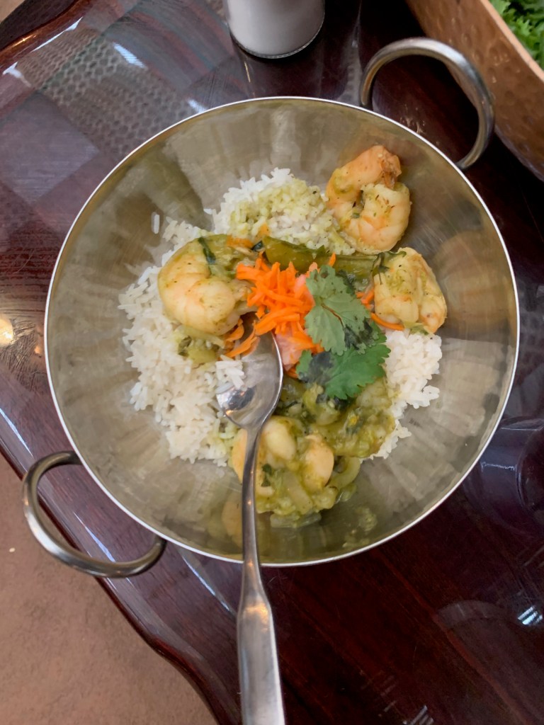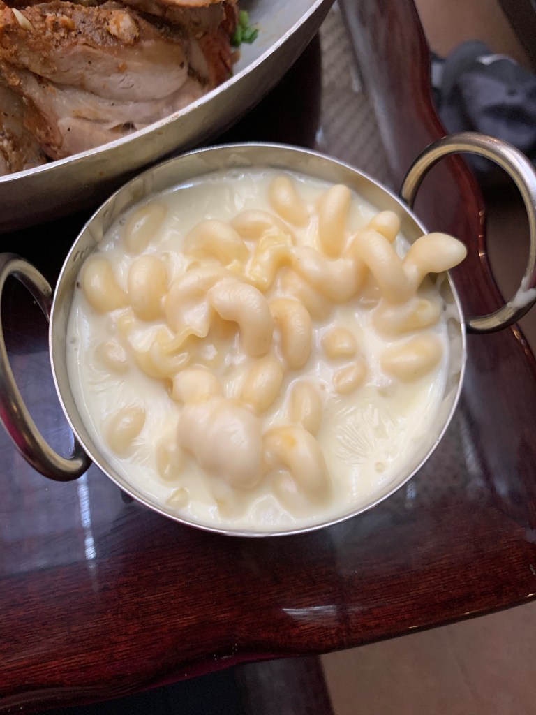 Then they brought me my giant meat plate which had chicken, pork, and steak, and another smaller plate with a curry shrimp dish. Sides included rice, potatoes, an assortment of vegetables, and some deliciously creamy mac and cheese.