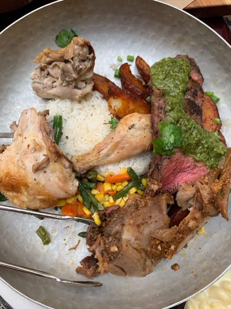 My meal started with a delicious bread plate with some amazing dipping sauces, and “African themed salads” which actually was just mostly lettuce with some citrus dressing. I barely touched the salad to preserve stomach space for the good stuff, but I held on to the bread sauces for the rest of the meal and all the meat that was on its way.