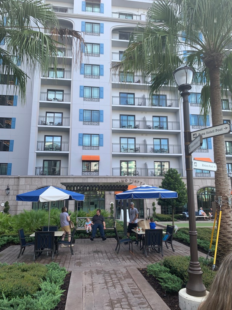 But when you go to Disney you obviously aren’t going to hang out in the rooms or even spend most of your time at the resort at all. Fortunately for those of you thinking about staying at the Riviera though, the location is AMAZING. This resort is right on the Skyliner, my absolute favorite form of transportation on property. The Skyliner provides easy access to both Epcot (my favorite park), and Hollywood Studios. Easy access to Epcot is a huge win too because that also means easy access to a ton of amazing restaurants both inside the park and on the Boardwalk which you can access without a park ticket.