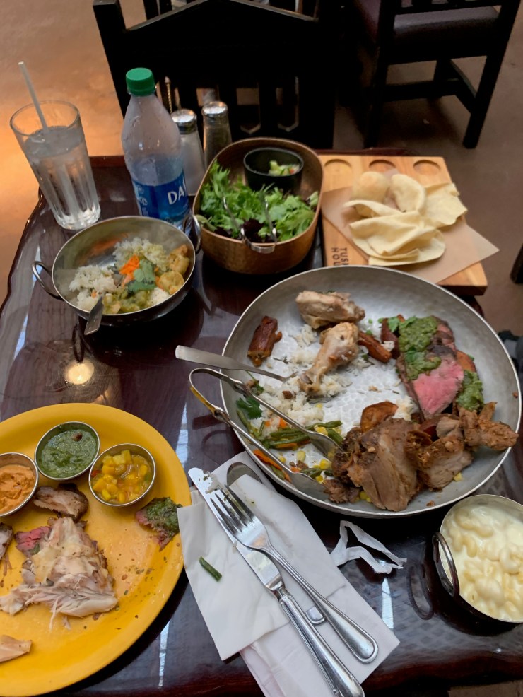 On my trip with Jen and Jackie, we ate at Nomad Lounge. This is connected to Tiffin’s and is more of a lounge than a real sit down meal, so it’s quicker but equally delicious if you want good food and to get right back to the park as long as it’s not a long wait (they don’t take reservations). It’s also not as adventurous of a menu for those of you who don’t eat Indian food. You can’t read about that because one week later the Covid quarantine that no one expected (except Alexa) began and I stopped writing and became a preschool teacher full time, which is my biggest nightmare. However, you can read about the trip here, just not the restaurant.